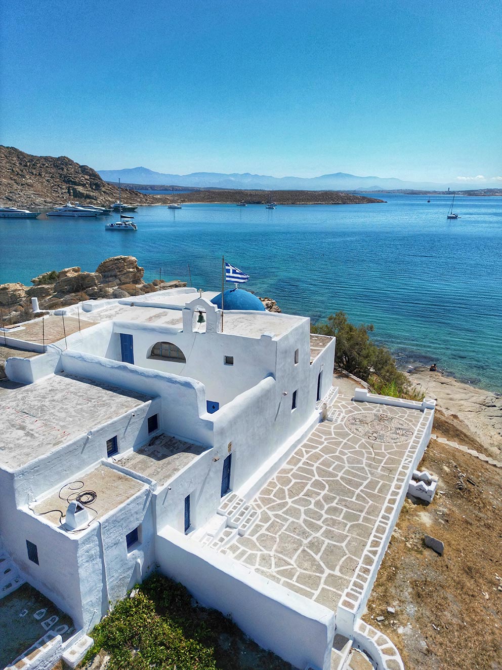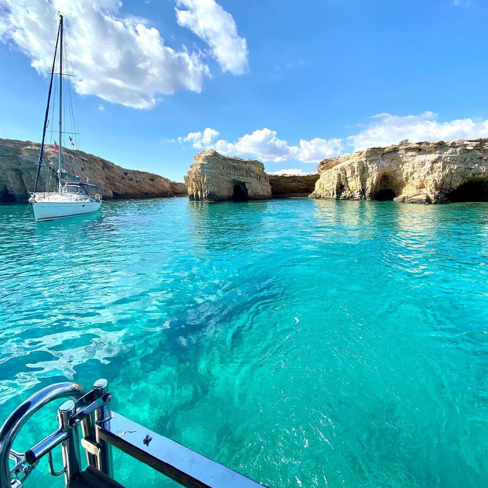 The daily cruise departs from the port of Naxos, sailing towards the southern coast of Paros. Our first stop is a beautiful beach for a refreshing swim, followed by a visit to the iconic Mikri Vigla, known for its turquoise waters and golden sands.