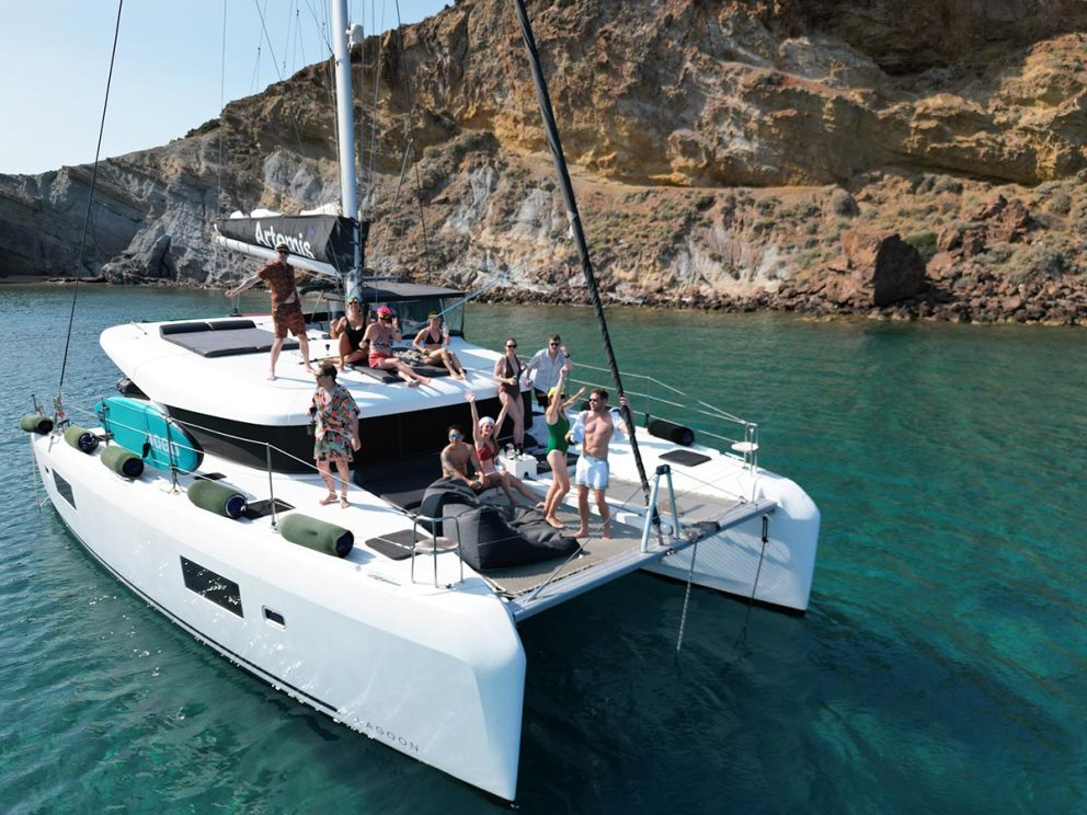 While you enjoy the sea, our crew prepares a delicious traditional meal, served on board. Before returning to Naxos in the early afternoon, you’ll have time to relax on the luxury catamaran or enjoy one last swim, concluding a truly memorable sailing experience.